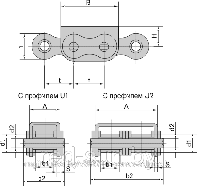 Цепь приводная специальная со специальным контуром пластин ISO 16A-U1